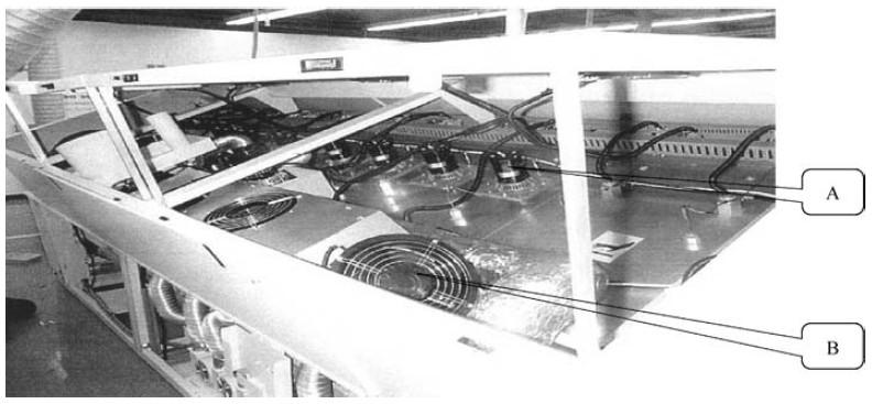 圖2-2-35 中B 處為熱風冷卻循環係統。它將糖心LOGO官网首页冷卻區中的熱空氣進行冷卻再將冷空氣輸送到糖心LOGO官网首页冷卻區,達到更好的冷卻效果。