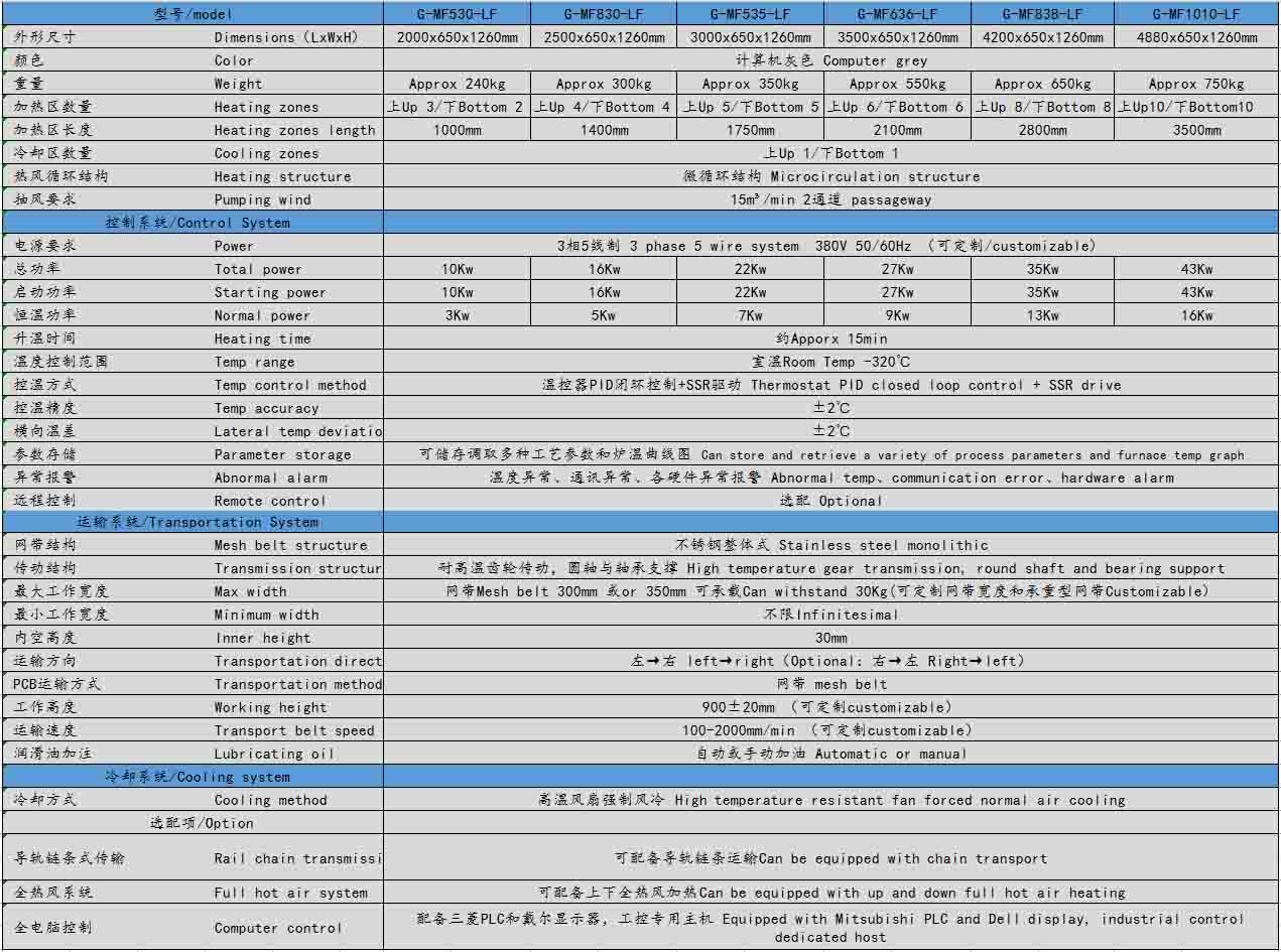 4、相鄰溫區差別MAX可達100℃,不串溫,每個溫區之溫度和熱風風速獨立可調節,運輸采用變頻控製、濕度控製精度可達±10mm/min,特別適合 BGA/CSP及0201等焊接